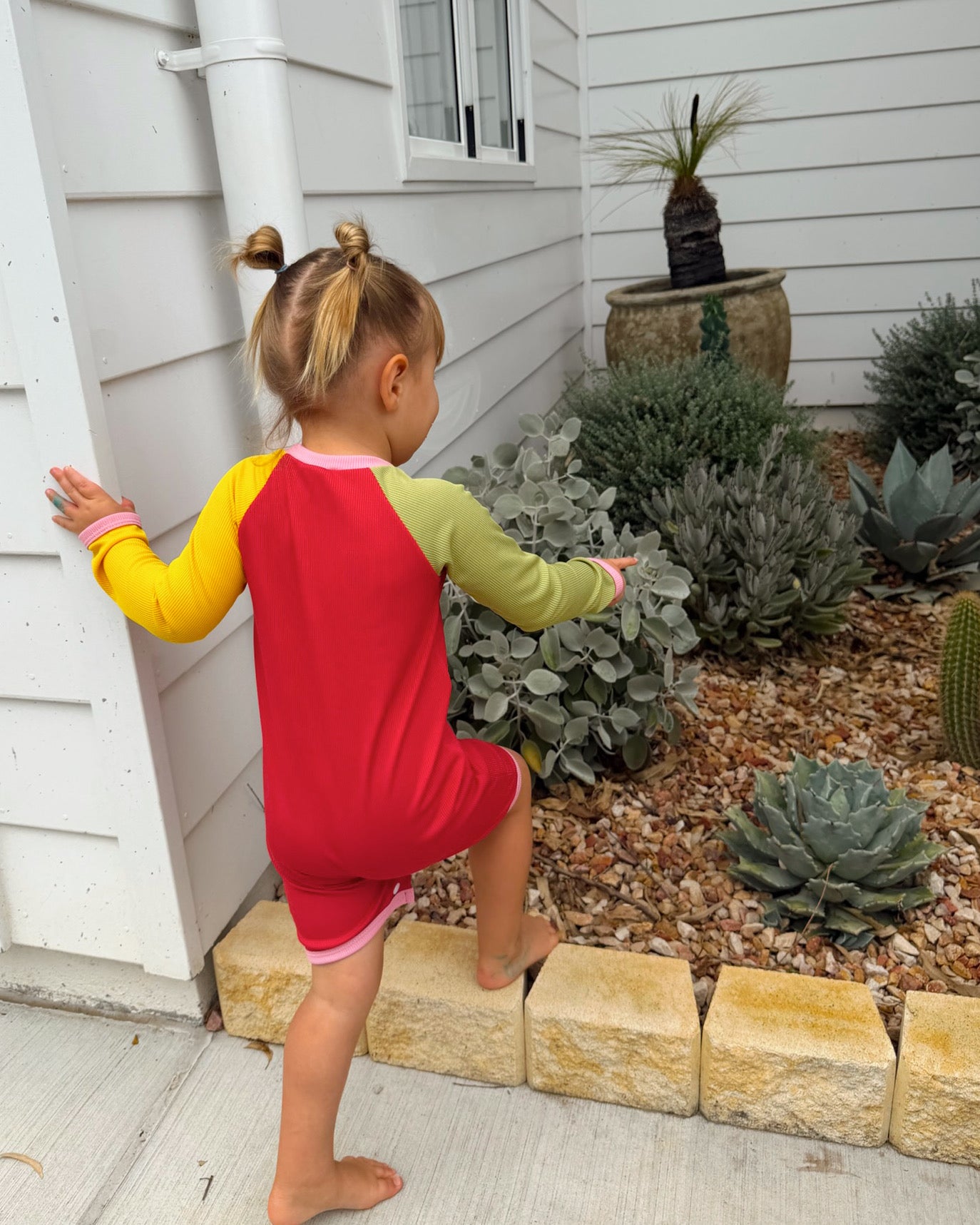 Our Superstar Swimsuit is the perfect outfit for the Australian beach. Made from a UPF50+ polyester and elastane blend, the swimsuit protects precious little skin from the harsh Australian sun.